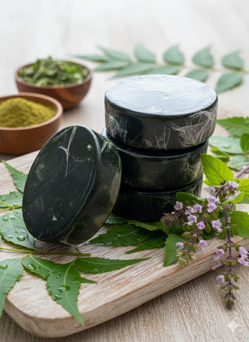 Neem & Tulasi Organic Soap – Acne Care + Deep Cleansing Herbal Soap 🌿✨